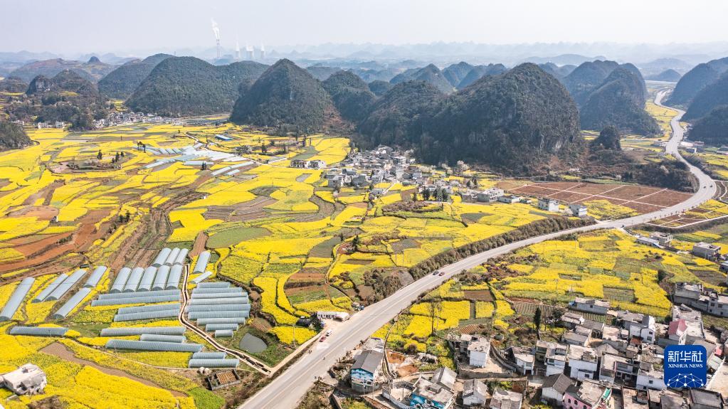 這是3月9日在貴州省六盤(pán)水市六枝特區木崗鎮瓦窯村拍攝的油菜花田(無(wú)人機照片)。