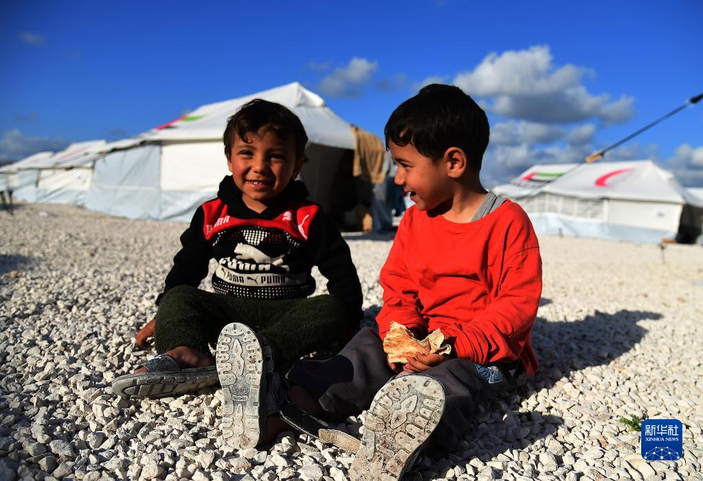 這是3月9日在敘利亞杰卜萊的一處災民安置營(yíng)內拍攝的兒童。