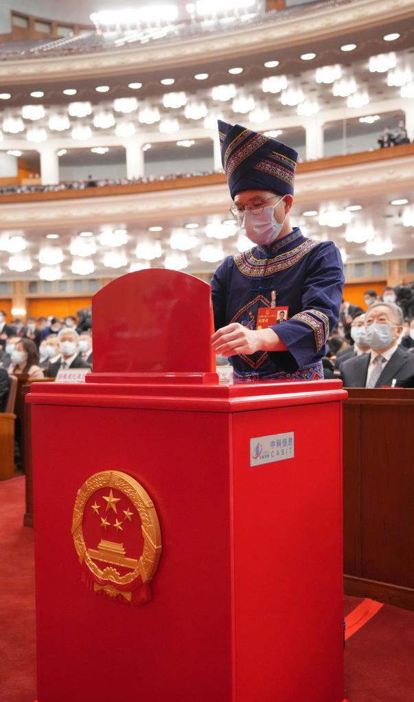 3月10日,十四屆全國人大一次會(huì )議在北京人民大會(huì )堂舉行第三次全體會(huì )議。這是代表在投票。