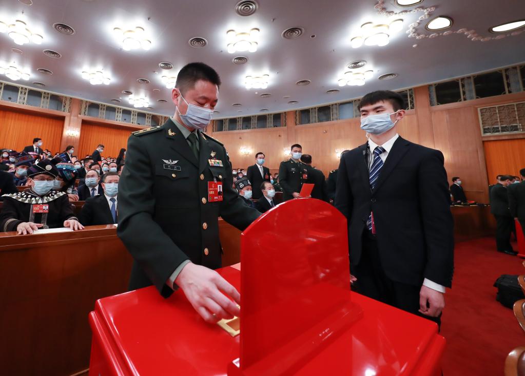 3月10日,十四屆全國人大一次會(huì )議在北京人民大會(huì )堂舉行第三次全體會(huì )議。這是代表在投票。
