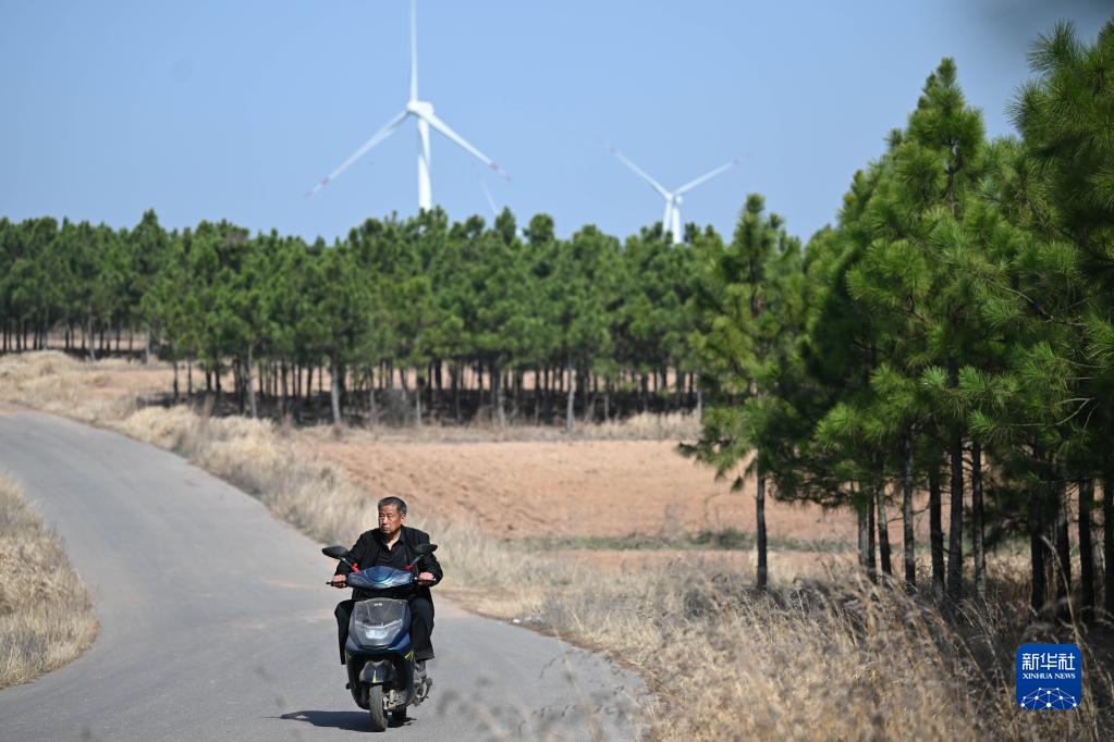 3月10日,張偉騎著(zhù)電動(dòng)車(chē)在五河縣朱頂鎮陸沖山的山林中巡護。