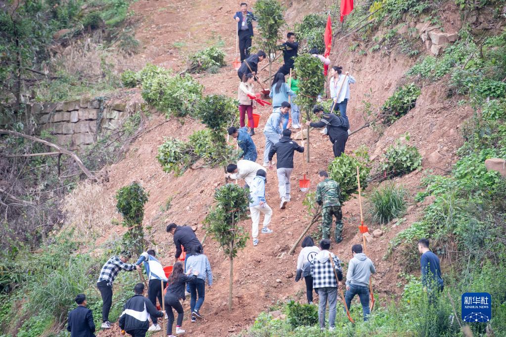 3月10日,在位于重慶市璧山區八塘鎮陽(yáng)龍村的縉云山腳下,社會(huì )各界人士在進(jìn)行植樹(shù)活動(dòng)。