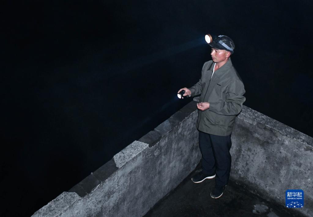 3月8日夜,黃同維在火情瞭望塔上觀(guān)測。