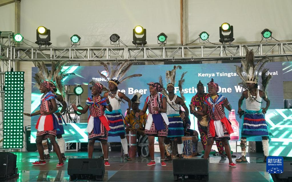 3月11日,藝術(shù)家們在肯尼亞首都內羅畢舉辦的青島啤酒節上表演歌舞。