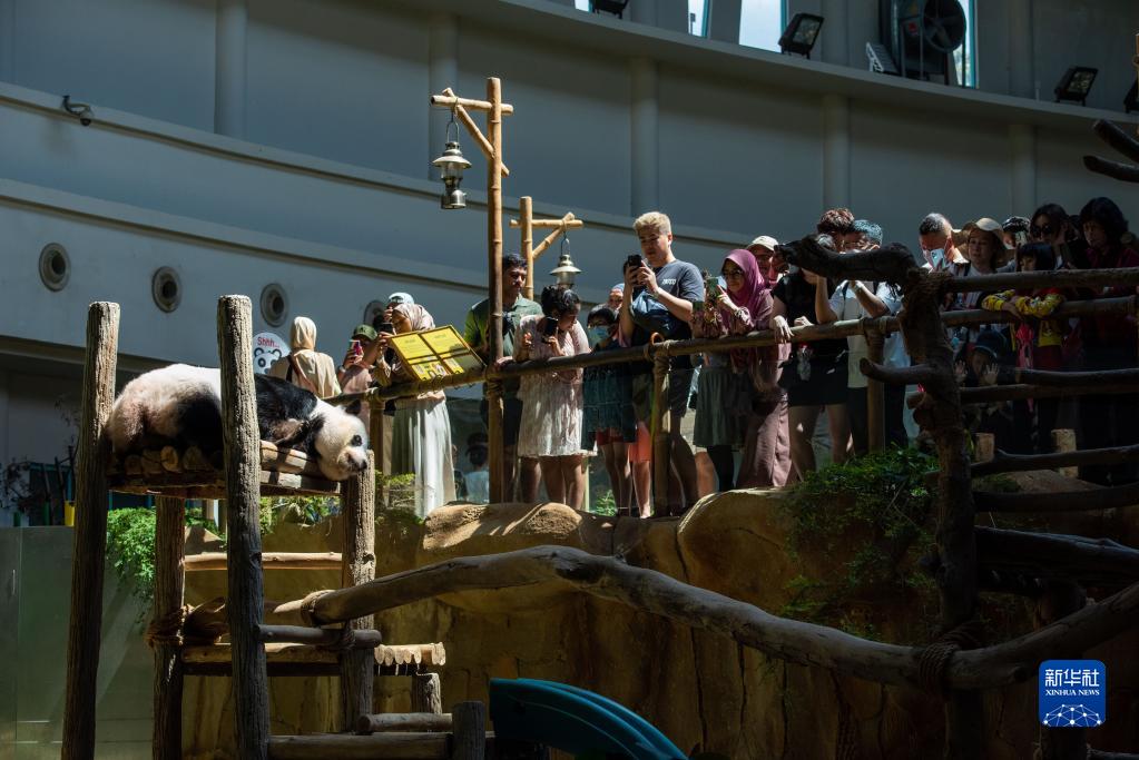 3月11日,游客在馬來(lái)西亞吉隆坡觀(guān)看大熊貓。