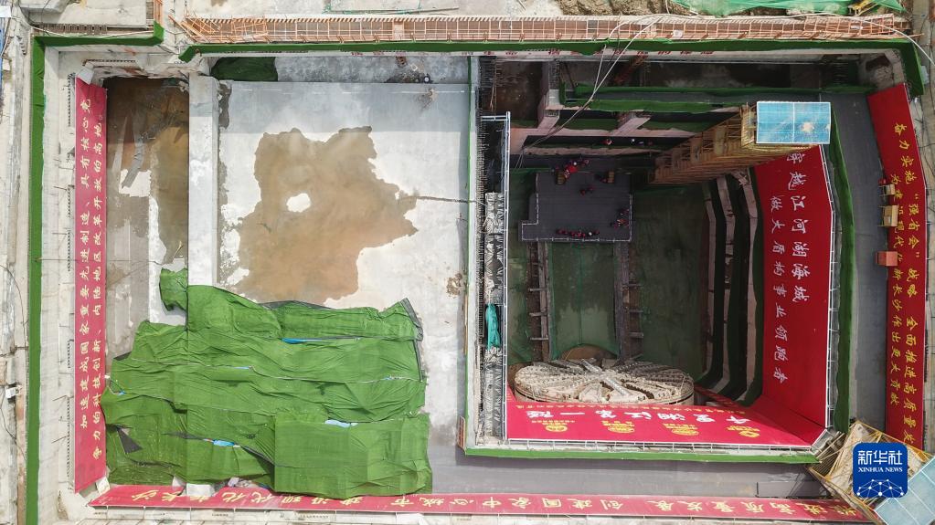 這是3月12日拍攝的長(cháng)沙市湘雅路過(guò)江通道右線(xiàn)隧道貫通現場(chǎng)(無(wú)人機照片)。