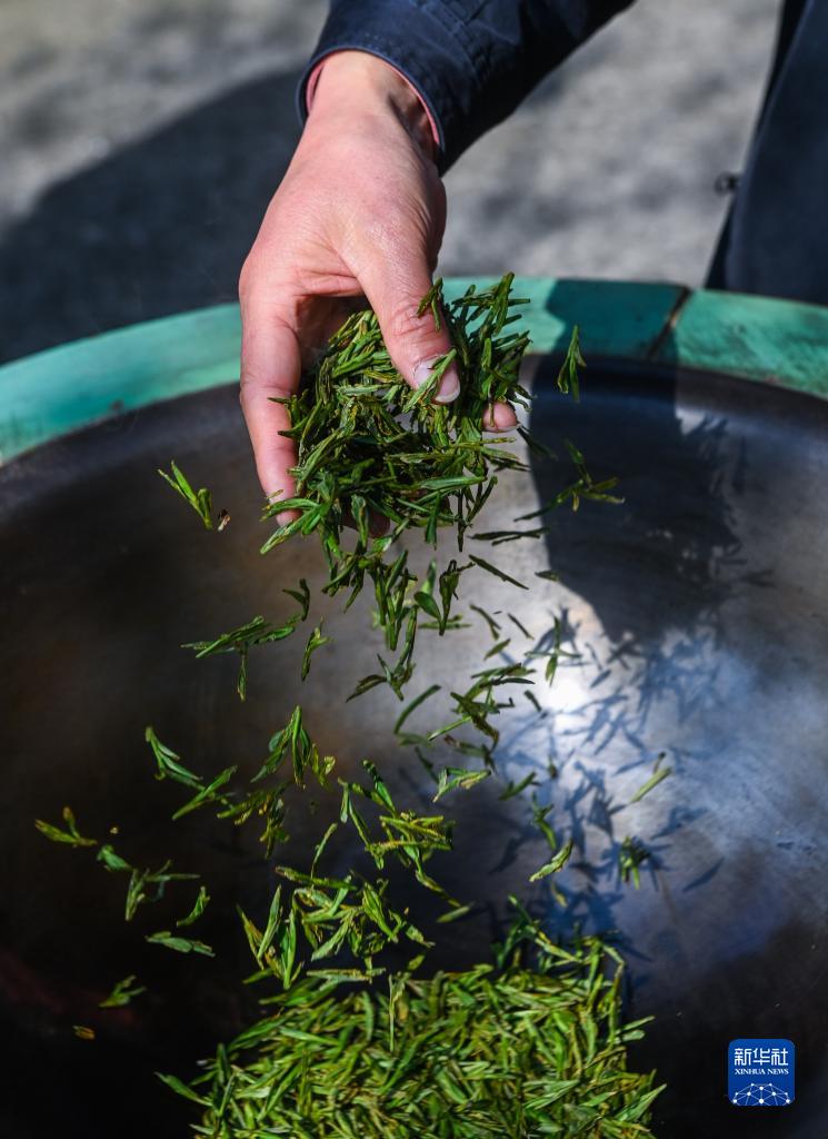 3月13日,龍井村茶農在手工炒制西湖龍井“明前茶”。