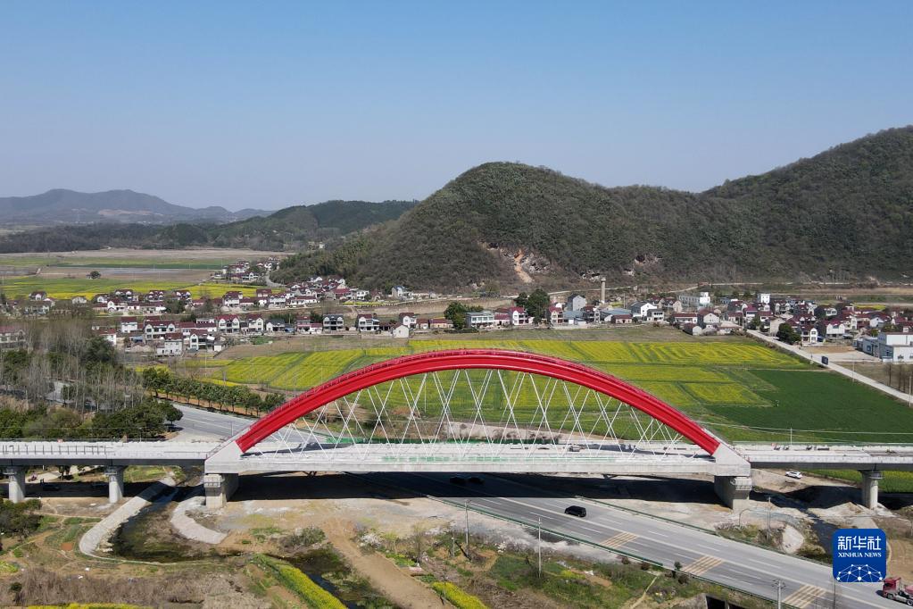 這是3月14日拍攝的中鐵十一局池黃鐵路無(wú)砟軌道施工現場(chǎng)(無(wú)人機照片)。