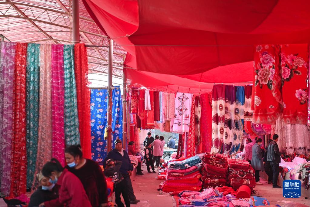 新疆莎車(chē)縣綜合巴扎上,人們在選購商品(3月12日攝)。