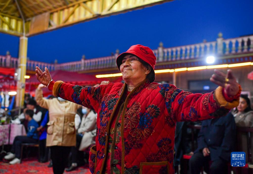 一位長(cháng)者在新疆莎車(chē)縣的美食巴扎——喀贊其夜市的舞池上跳舞(3月10日攝)。