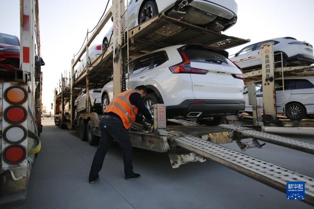 3月13日,工作人員在江蘇太倉港海通汽車(chē)碼頭堆場(chǎng)作業(yè)。
