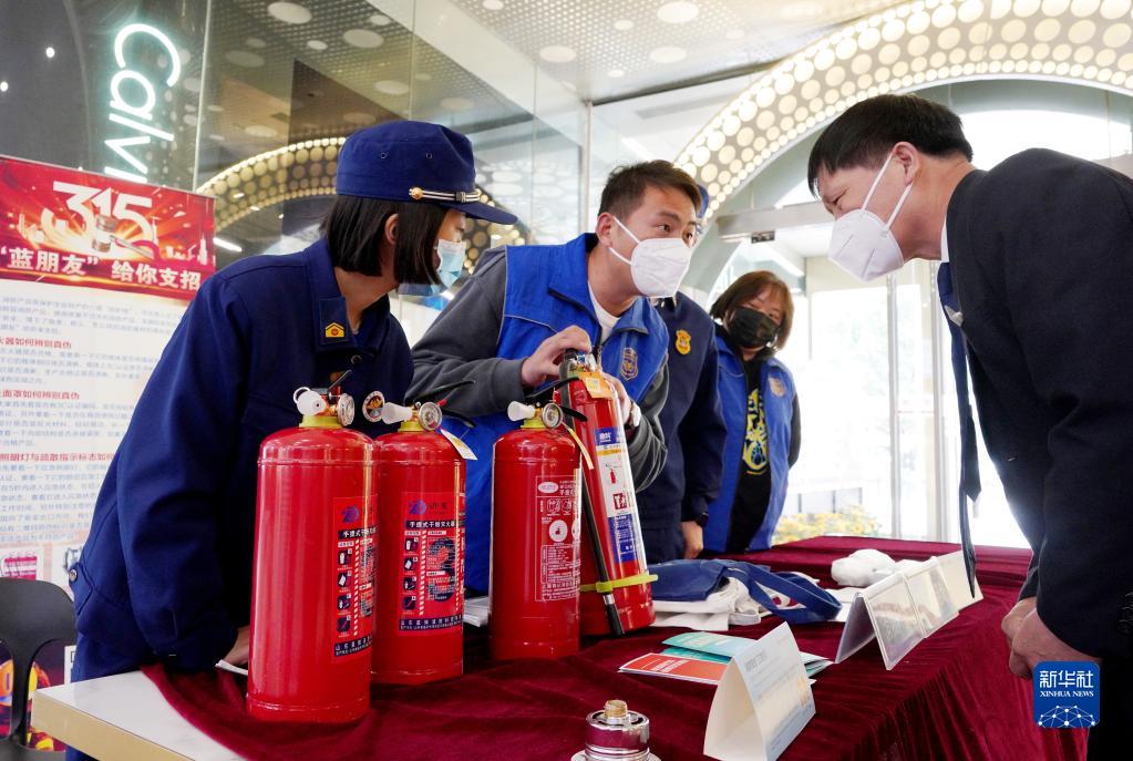 當日,上海長(cháng)寧消防救援支隊聯(lián)合市場(chǎng)監管部門(mén)在轄區一家大型商場(chǎng)內,舉行“3·15 ‘藍朋友’給你支招”活動(dòng),為市民群眾現場(chǎng)講解消防產(chǎn)品真偽的辨別方法,并示范如何正確使用消防產(chǎn)品,共同筑牢消防安全“防火墻”。
