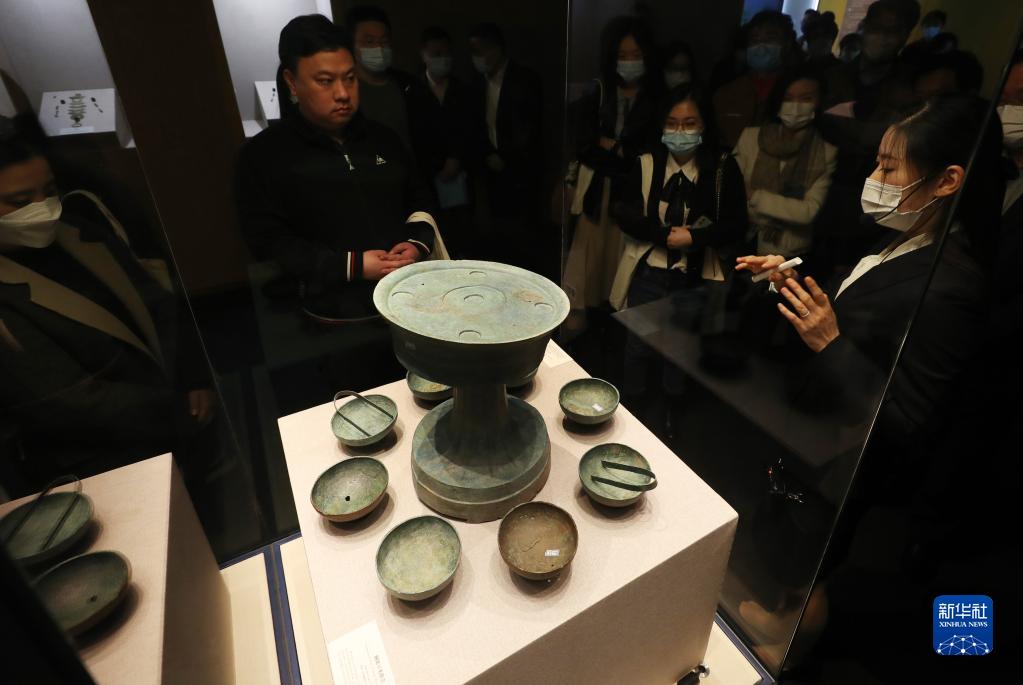3月14日,參觀(guān)者在戰國銅俎豆夾組合展柜前駐足觀(guān)看。