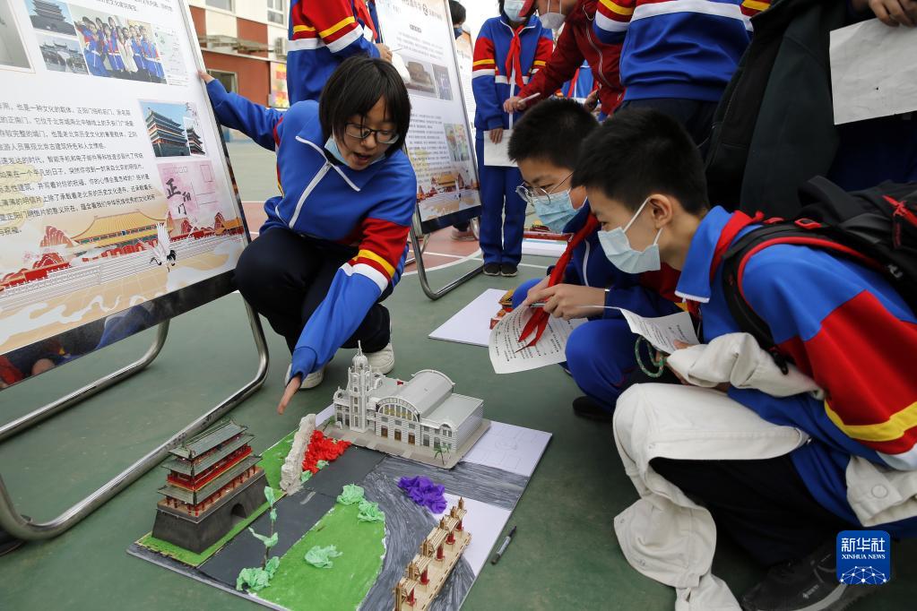當日,北京市第五中學(xué)分校第六屆“國潮來(lái)襲——北京中軸線(xiàn)”主題科技嘉年華跨學(xué)科綜合實(shí)踐作品設計展示活動(dòng)在校園舉行。學(xué)校組織學(xué)生通過(guò)制作縮微景觀(guān)沙盤(pán)、文創(chuàng )作品設計、拍攝微電影等形式,結合語(yǔ)文、歷史、地理、藝術(shù)、信息等學(xué)科研討挖掘周邊資源,跨學(xué)科、多角度地詮釋“北京中軸線(xiàn)”的歷史文化和建設成就。