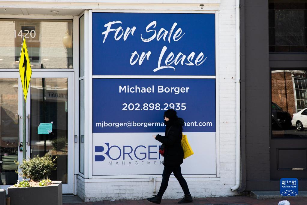 3月14日,在美國華盛頓,一名女子從房屋租售廣告前走過(guò)。