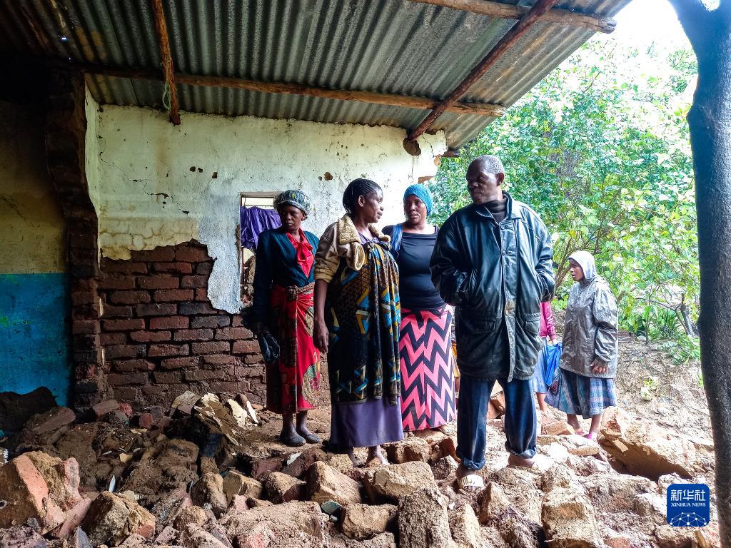 3月14日,在馬拉維南部的布蘭太爾地區,幾名居民查看被風(fēng)暴毀壞的房屋。