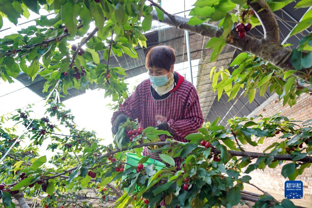 3月15日,河北省樂(lè )亭縣一家農業(yè)開(kāi)發(fā)企業(yè)的工人在大棚內采摘櫻桃。