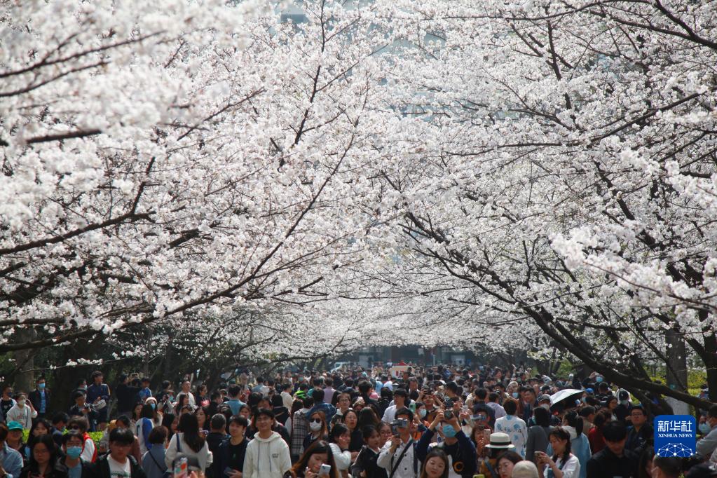 3月15日,人們在南京林業(yè)大學(xué)校園內賞櫻游玩。