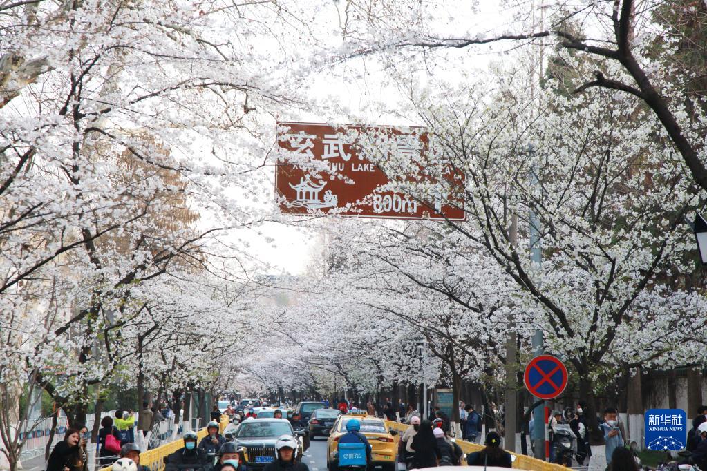 近日,南京櫻花盛開(kāi),燦若云霞,吸引游人觀(guān)賞。