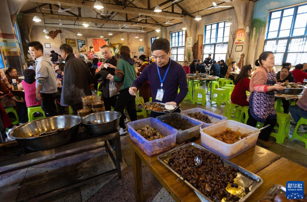3月14日,“張火癡”在芭溝站旅客食堂用工作餐。