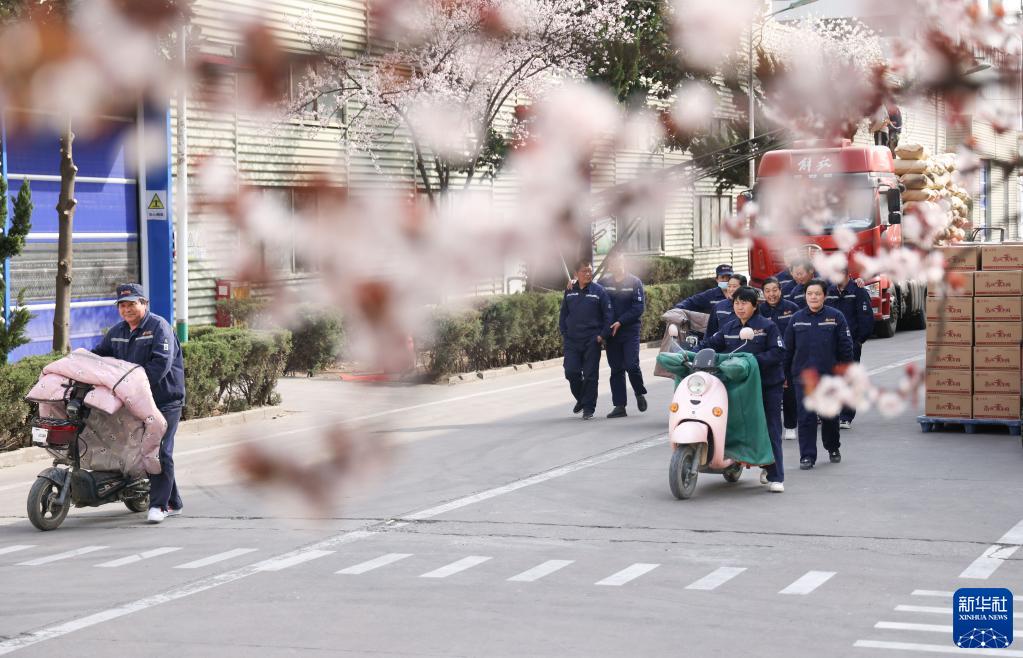 3月15日,山東省臨沂市蘭山區半程鎮,下班后的村民走出山東一大豆蛋白生產(chǎn)企業(yè)廠(chǎng)區。