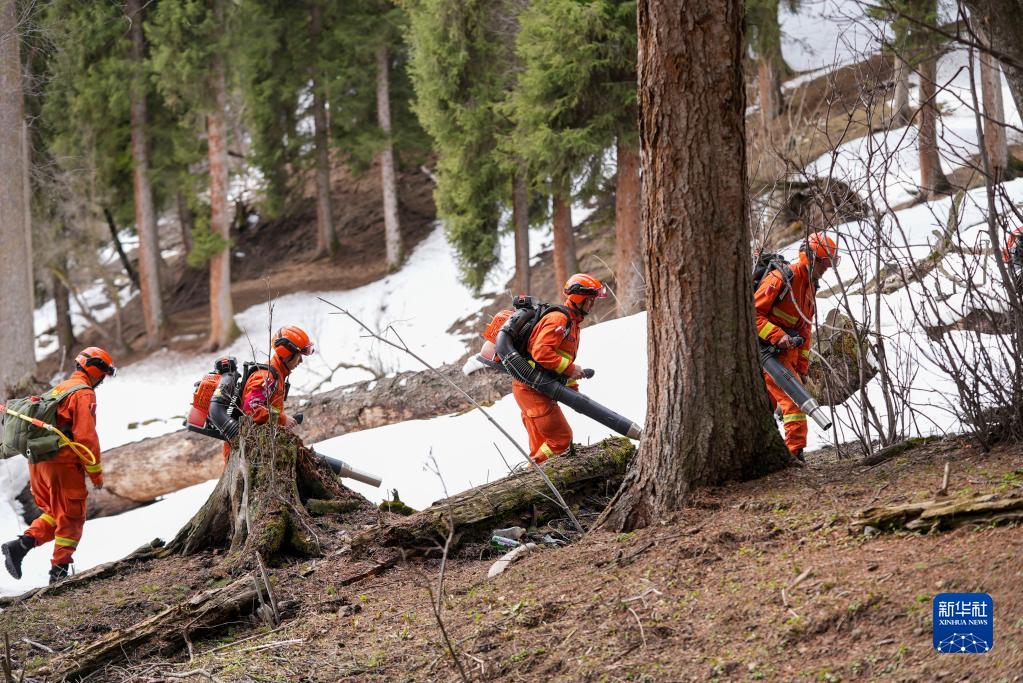 3月15日,鞏留縣森林消防大隊指戰員在庫爾德寧林區內行進(jìn)。