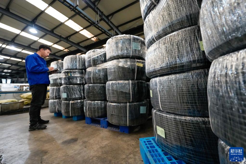 3月16日,玉田縣一家農用管材生產(chǎn)企業(yè)工人在核對滴灌設備產(chǎn)品信息。