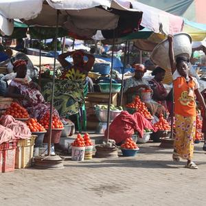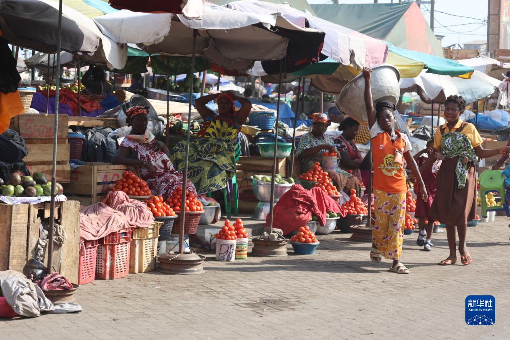 3月15日,商販在加納首都阿克拉一處市場(chǎng)兜售商品。