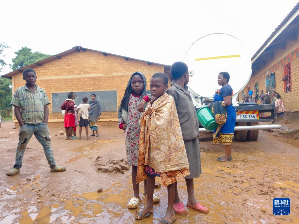 這是3月16日在馬拉維布蘭太爾一臨時(shí)安置營(yíng)地拍攝的災民兒童。