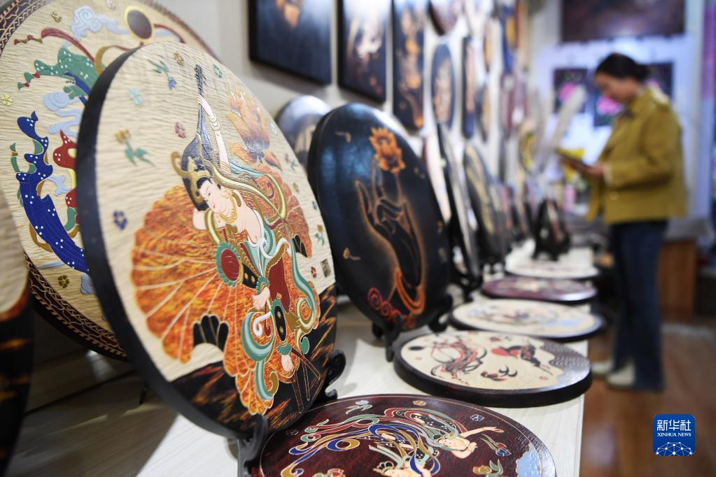 一名游客在敦煌夜市選購特色文創(chuàng )產(chǎn)品(3月16日攝)。