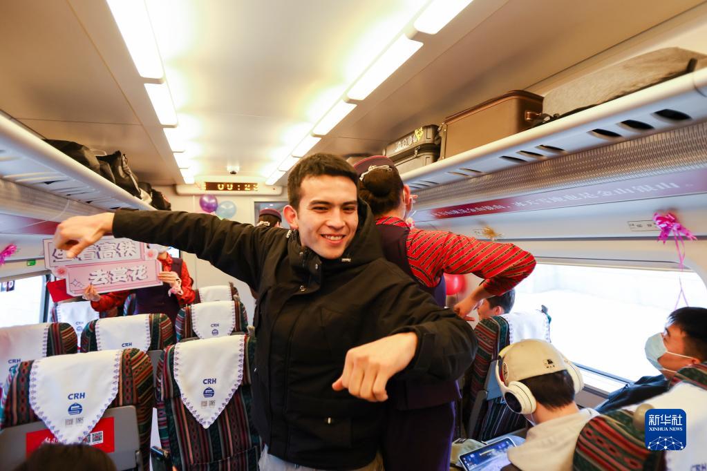 當日,560余名旅客乘坐首趟“杏花號”高鐵列車(chē),自烏魯木齊站出發(fā),駛往新疆春天的“第一站”——吐魯番,開(kāi)啟春季賞花之旅。