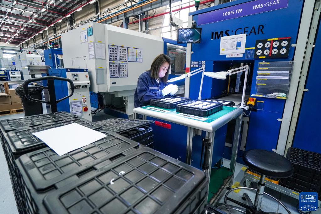 工人在位于太倉市高新區的億邁齒輪(太倉)有限公司生產(chǎn)車(chē)間內進(jìn)行加工作業(yè)(3月14日攝)。