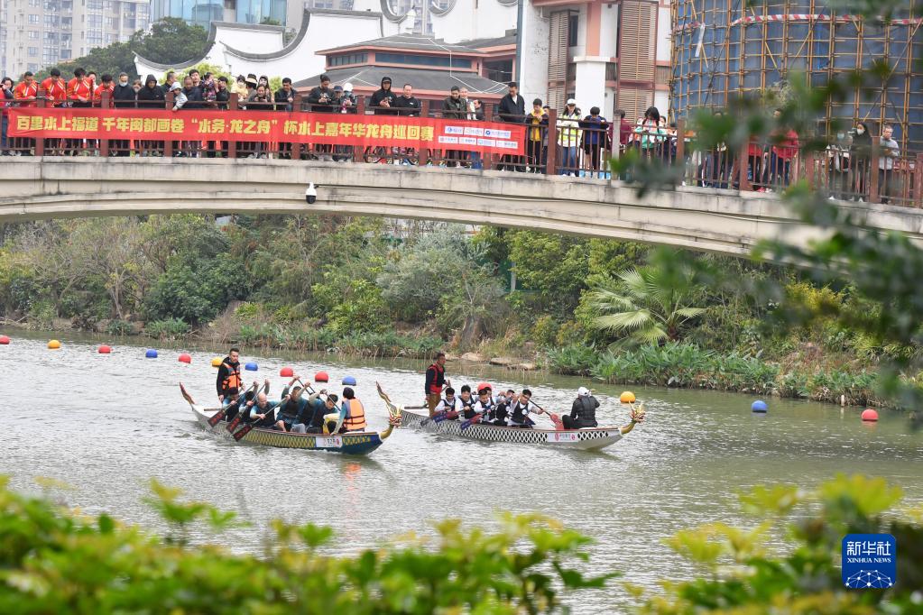3月18日,福州流花溪上參賽龍舟隊奮勇?tīng)幭取?/p>