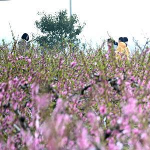 3月18日,市民在肥東縣響導鄉的桃園內游玩。