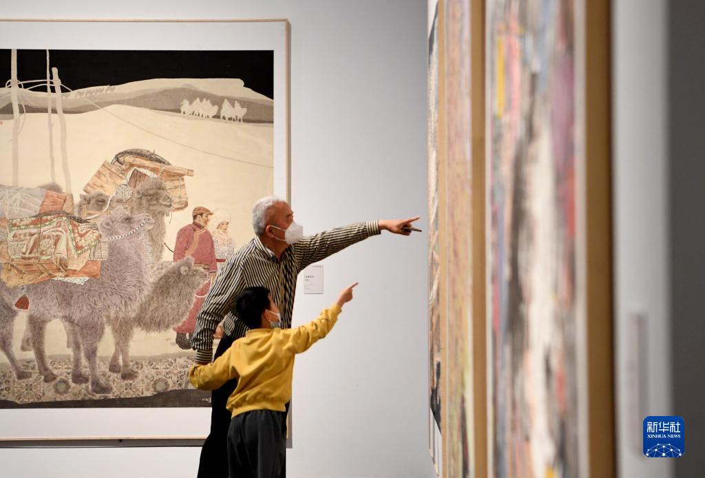 3月18日,參觀(guān)者在“第五屆全國中國畫(huà)展覽”上參觀(guān)展出作品。