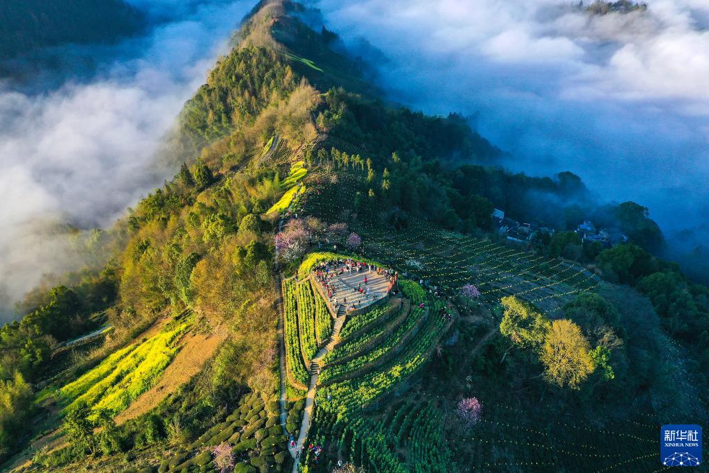 當日,安徽省黃山市歙縣霞坑鎮石潭村現壯觀(guān)云海,春景如畫(huà)。