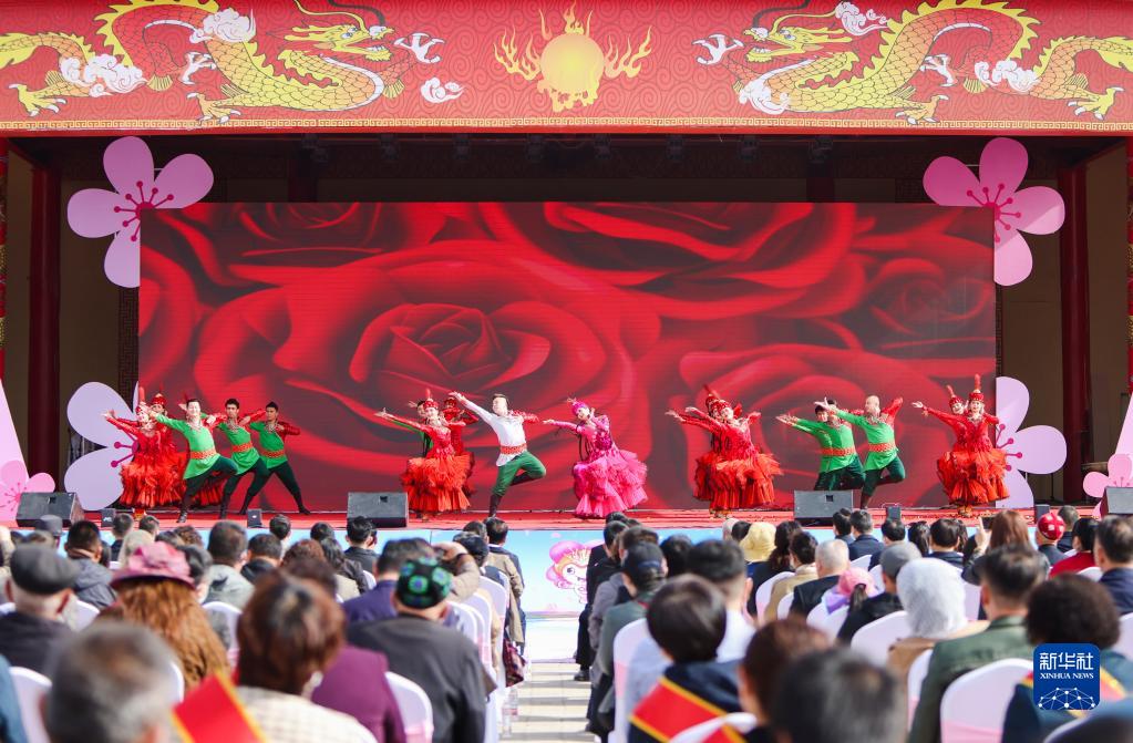 3月18日,演員在吐魯番杏花節開(kāi)幕式上表演。