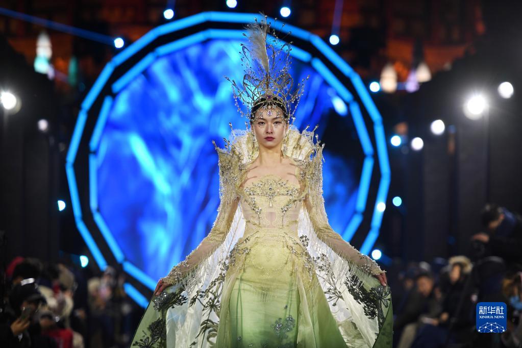 當晚,山東省青島市2023上街里·逛春天旅游藝術(shù)季華服時(shí)裝秀在棧橋景區回瀾閣前舉行。