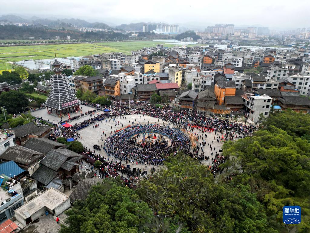 3月18日,榕江縣侗族同胞在歡慶“薩瑪節”(無(wú)人機照片)。