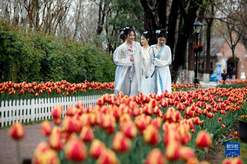 3月17日,游客在南京市濱江公園觀(guān)賞盛開(kāi)的郁金香。