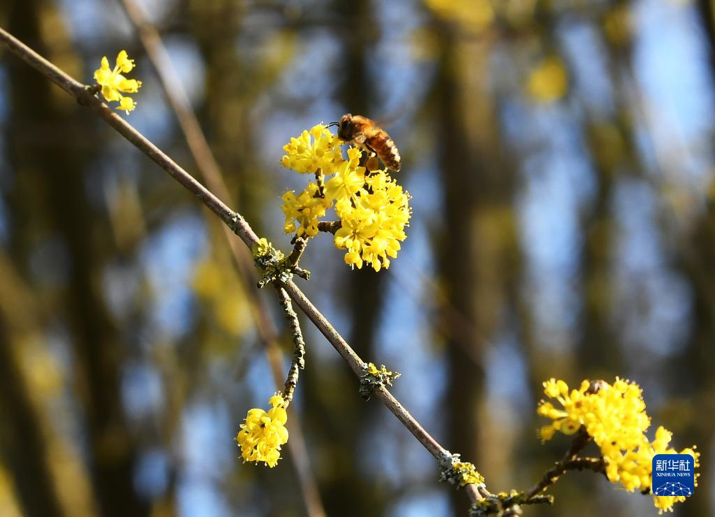 3月18日,蜜蜂在德國柏林布里茨花園采蜜。
