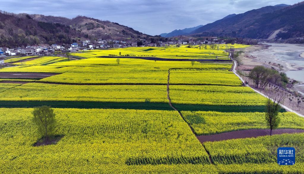 陜西寧強:嘉陵江第一灣千畝油菜花盛開(kāi)