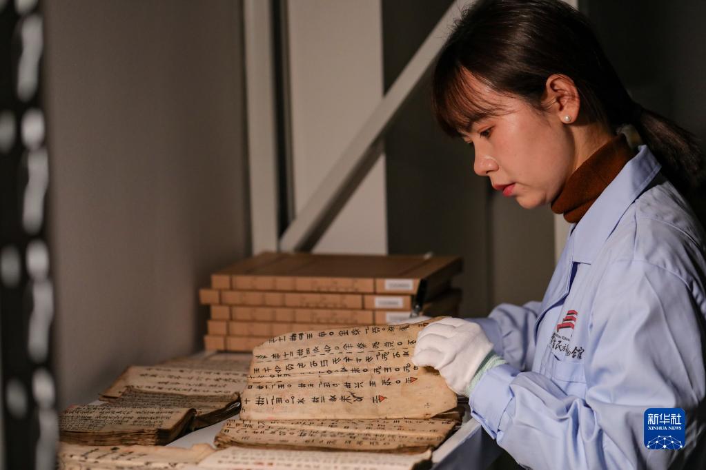 3月17日,貴州省民族博物館的工作人員在整理水書(shū)文獻。