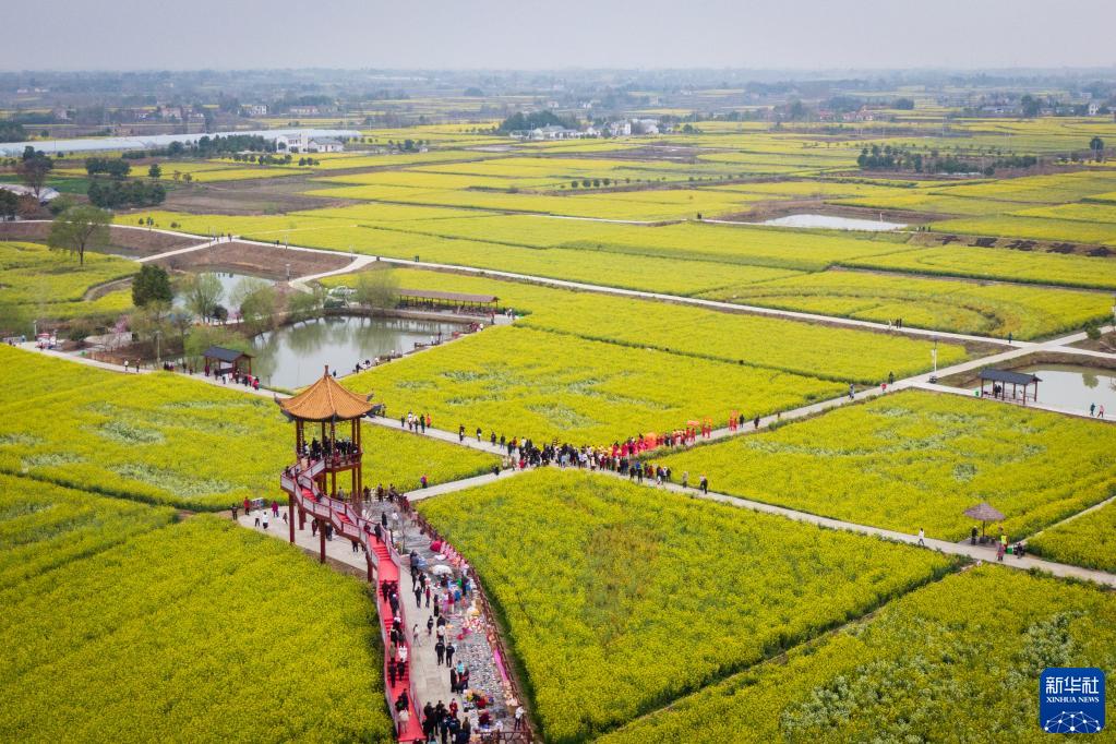 3月18日拍攝的油菜花節核心景區(無(wú)人機照片)。