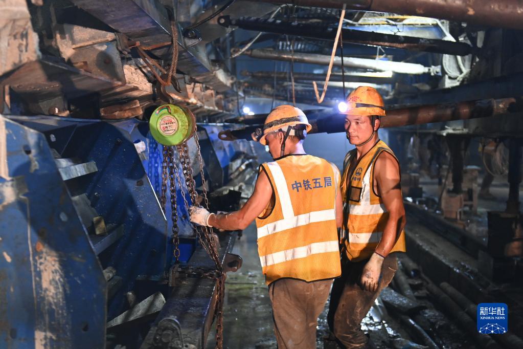 3月19日,中鐵五局工作人員在金甬鐵路鮑村隧道作業(yè)。