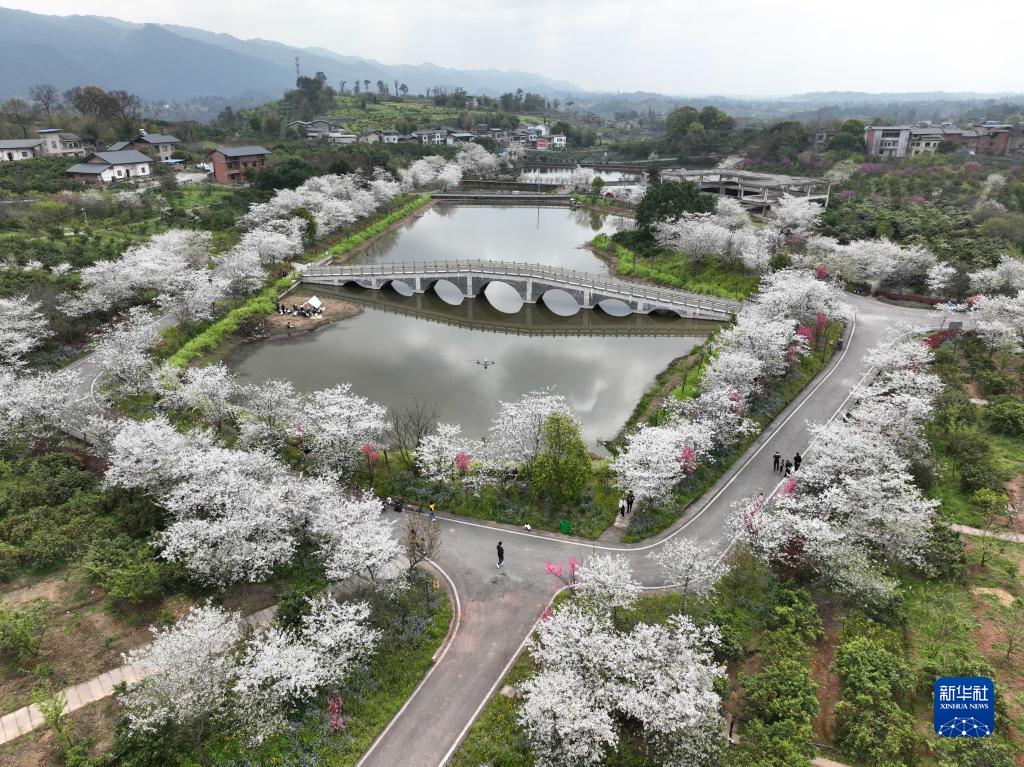 這是3月19日拍攝的重慶市北碚區澄江鎮五一村“櫻花橘香”農業(yè)公園景色(無(wú)人機照片)。