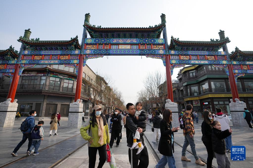 當日,北京前門(mén)大街商圈游人如織,眾多市民游客在這里參觀(guān)游覽。