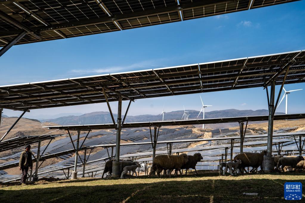 村民楊元聰在云南省巧家縣海壩光伏電站放羊(3月19日攝)。