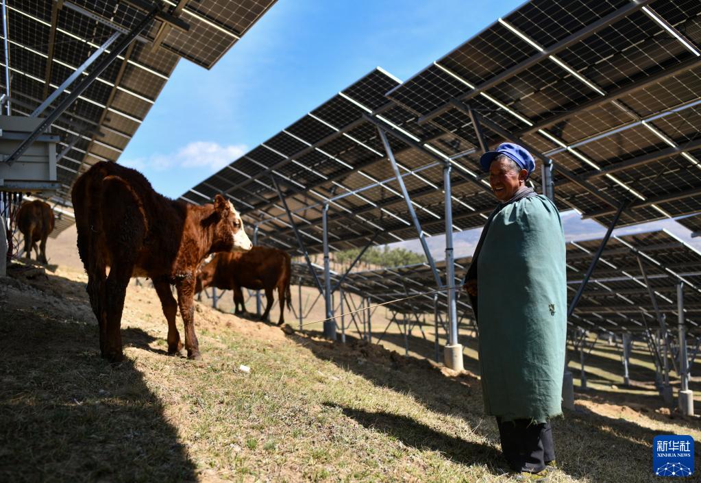 村民馬洪萬(wàn)在云南省巧家縣海壩光伏電站放牛(3月19日攝)。
