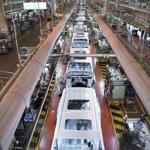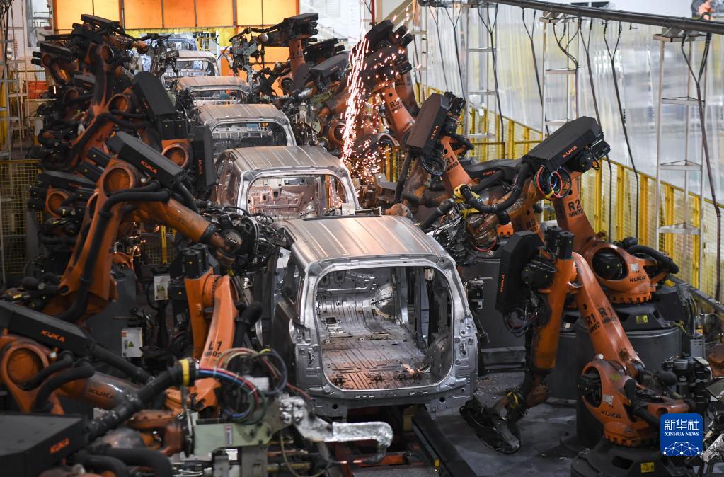 在廣州的廣汽傳祺焊裝工廠(chǎng)車(chē)身總成線(xiàn),機器人手臂在進(jìn)行焊接作業(yè)(3月20日攝)。